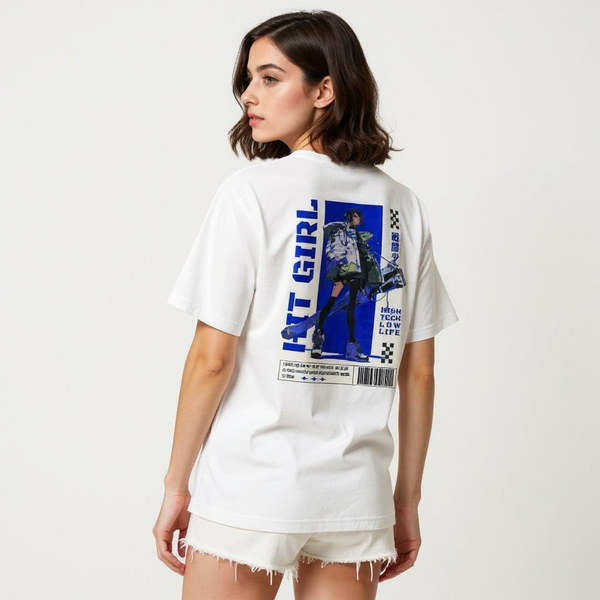This T-shirt features a vibrant graphic of a popular anime character on the back.The shirt is an oversize fit, offering a relaxed and comfortable wear.